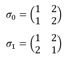 دقت کنید که مجموعه $S_2 = \{ \sigma_0 , \sigma_1\}$ تشکیل یک گروه را میدهد، زیرا نسبت به عمل دوتایی ترکیب توابع تمام ویژگیهای گروه بودن را شامل خواهد شد.
