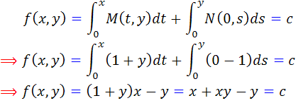 در قضيه 2 روش ديگري براي به دست آوردن تابع f ( جواب معادلات ديفرانسيل کامل )ارائه مي دهيم و در مثال 13 با استفده از اين قضيه، به حل يک معادله ديفرانسيل کامل مي پردازيم :