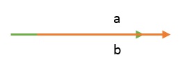 ۲. زمانی که دو بردار در یک جهت هم راستا باشند. در اینصورت زاویه بین این دو بردار صفر خواهد بود و $$ \cos 0 = 1 $$ است. لذا داریم: