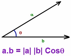 $$ \overrightarrow{a} . \overrightarrow{b} = || a || . ||b||\cos \theta $$