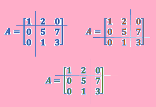 $A=\begin{bmatrix} 1& 2 & 0\\ 0 & 5 & 7\\ 0 & 1 & 3 \end{bmatrix}$