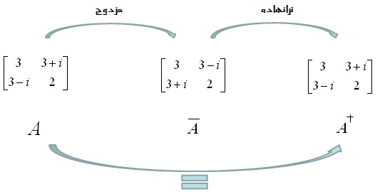 حال اگر به ترانهاده مزدوج ماتریس B و خود ماتریس B دقت کنید متوجه خواهید شد که این دو ماتریس یکسان میباشند.