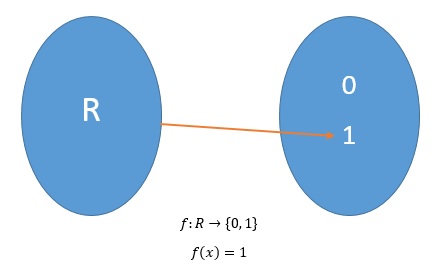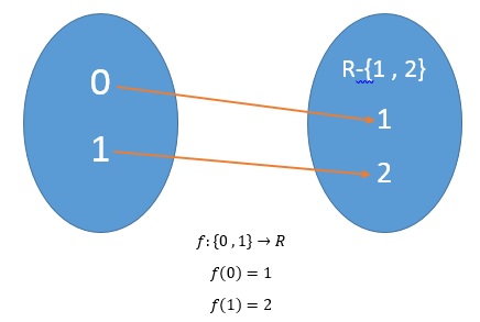 در این صورت مقدار تابع f به ازای هیچ نقطهای در دامنه مقدار یک نخواهد شد در نتیجه تابع پوشا نخواهد بود، زیرا نقطهای در برد تابع fیافتیم که مقداری برای آن در دامنه موجود نیست. حال اگر ضابطه تابع f به صورت زیر باشد: